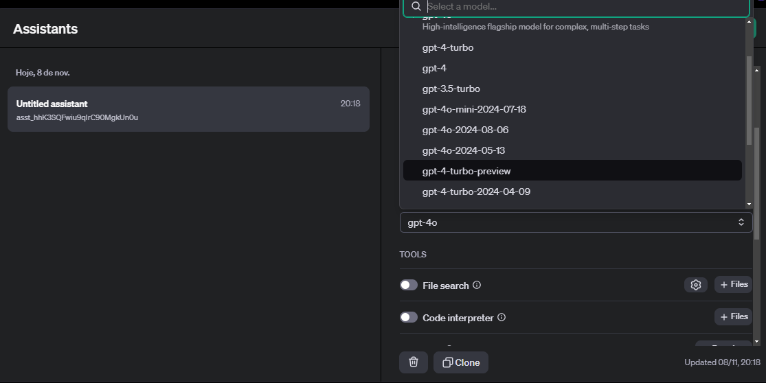 OpenAI oferece diferentes modelos de linguagem (como GPT-4 e GPT-3.5) para diversas necessidades. Escolher o modelo certo é crucial para garantir que o assistente tenha o comportamento esperado.