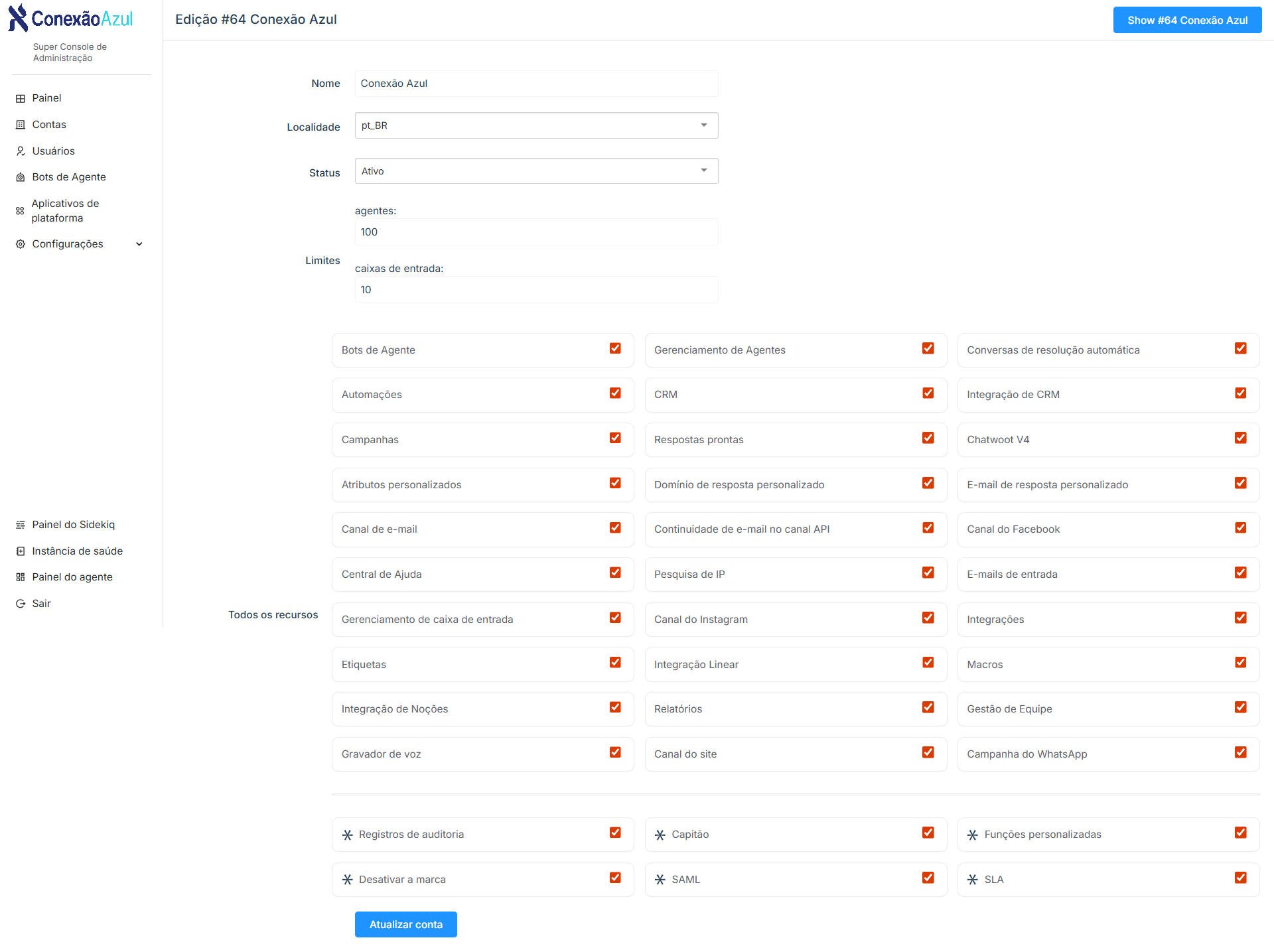 O que é: Plataforma de atendimento omnichannel, CRM e IA Copilot White‑Label (marca, domínio e e‑mails do parceiro), baseada no framework Chatwoot e mantida pela Conexão Azul.
